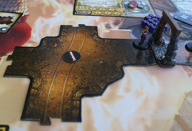 I suppose I should mention the Darkness track. Each turn we had to roll a number or higher to hold back the darkness. Failure made the tokens move down the track. Once the track was filled it was game over. By this stage we were getting quite close to having to make a run for it & then...